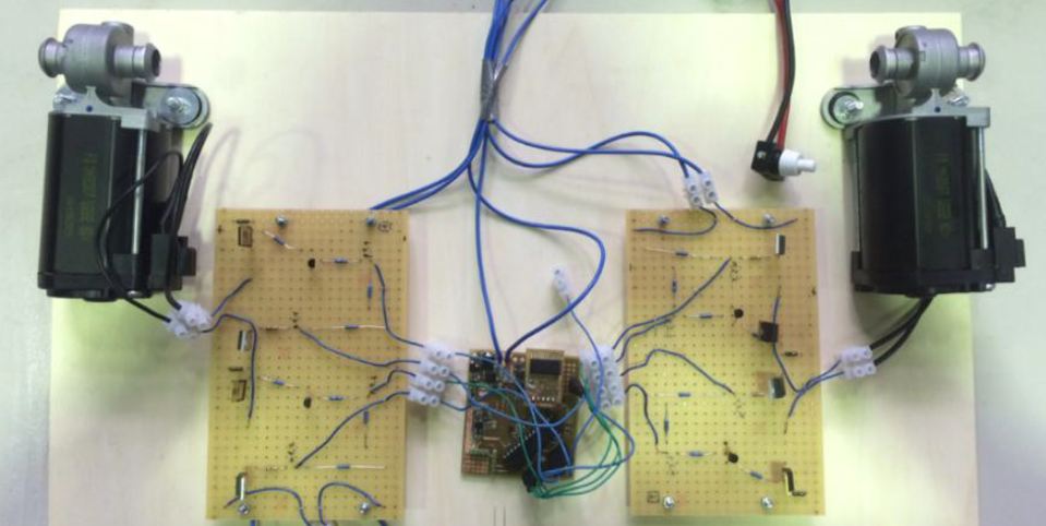 Im Rahmen einer Projektarbeit für Studenten des sechsten Semesters soll ein automatischer Obstsammler entwickelt werden. In einerm ersten Durchlauf wurde eine Steuerung aufgebaut, die das Signal eines Beschleunigungssensors auswertet und bei Erkennen einer Kollision die Fahrtrichtung ändert, ähnlich der automatischen Rasenmäher. Basis ist hier ein PIC Microcntroller. Da weder der Aufbau elektronischer Schaltungen, noch das Entwerfen und Testen von Microcontrollerprogrammen zum Kerngebiet eines Maschinenbaustudenten gehören kann bei der Inbetriebnahme auch mal was funken. Aber nachdem die Transistoren richtig eingebaut wurden kann man viel "Spaß" haben.