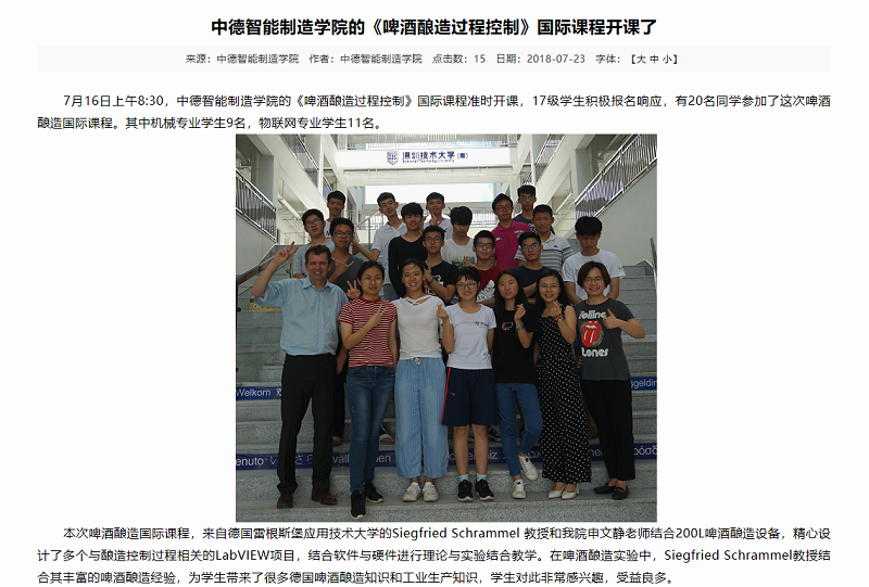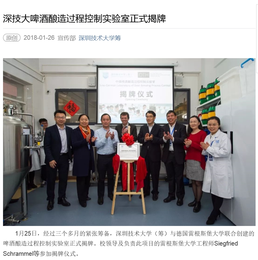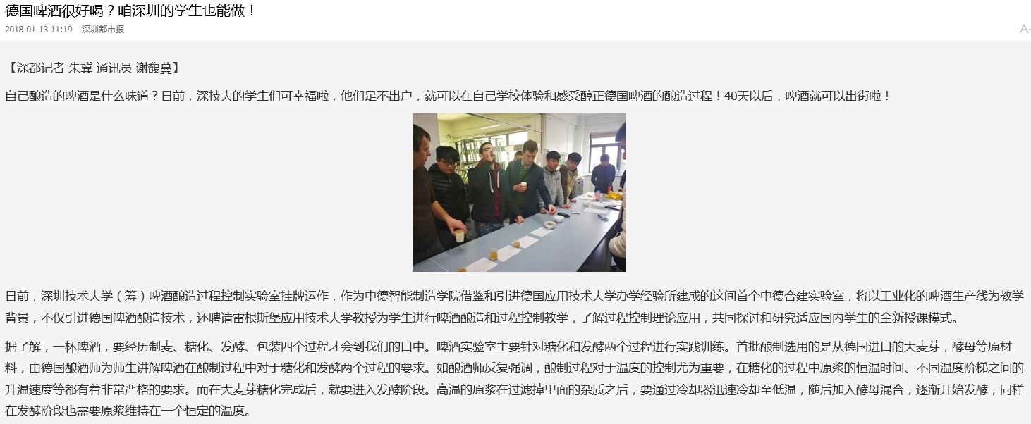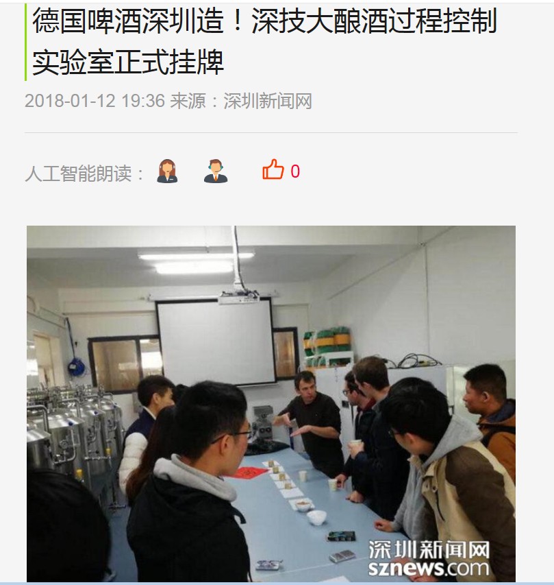 workshop, the German professor emphasized ![]() ![]() 真带劲!深圳这所学校可自酿德国啤酒自己酿造的啤酒是什么味道?日前,深圳技术大学(筹)啤酒酿造过程控制实验室挂牌运作,该校的学生们足不出户,就可以在自己学校体验和